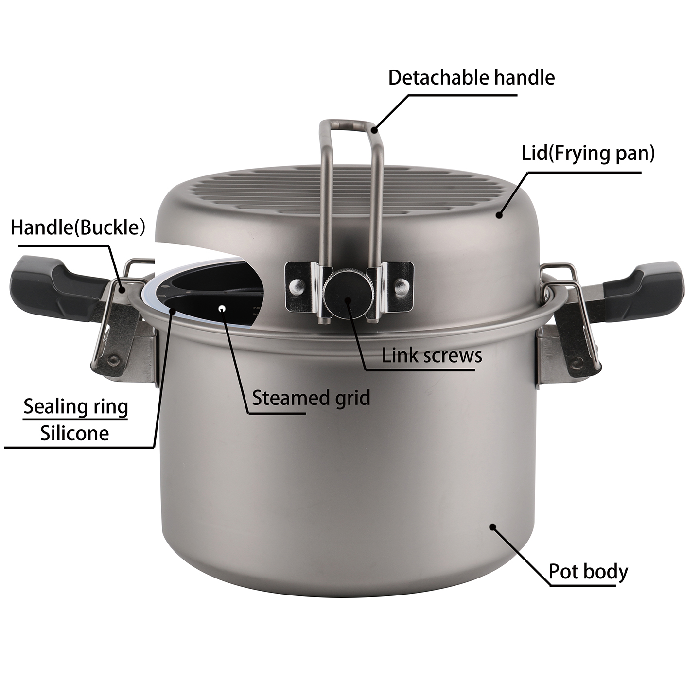 This is a multifunctional camping pot that combines steaming, boiling, braising, stir frying, and pan frying.